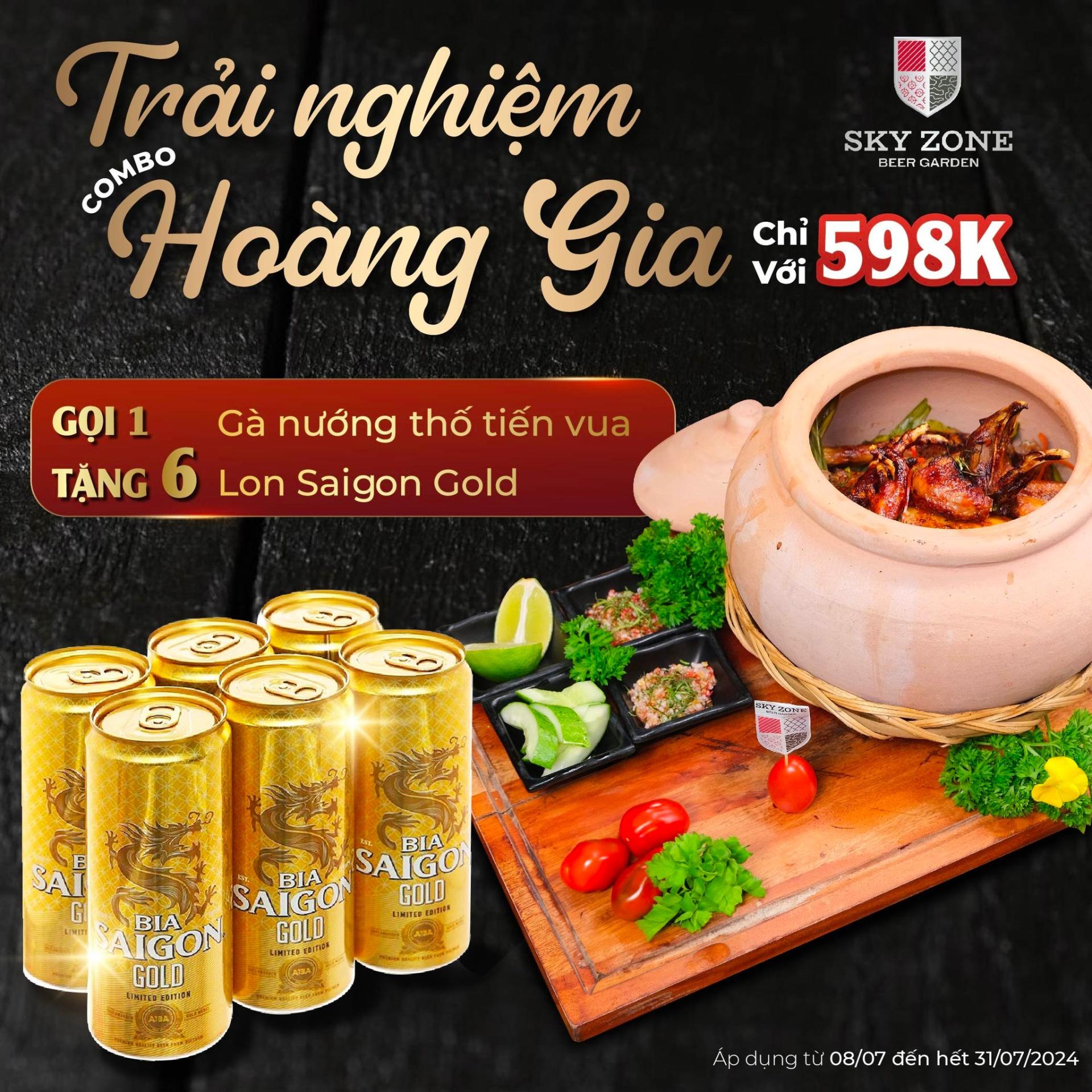 From a luxurious rooftop view, our Sky Zone now delights diners with a royal culinary experience at an incredible price: GET 6 cans of Saigon Gold beer when you order 1 Roasted Chicken for just 598K.