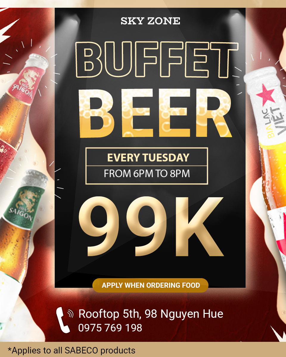 Đây không chỉ là buffet bia, mà là giờ vàng xả stress, là buổi “happy hour” đích thực dành cho những tâm hồn yêu bia và thích tụ tập vui vẻ!