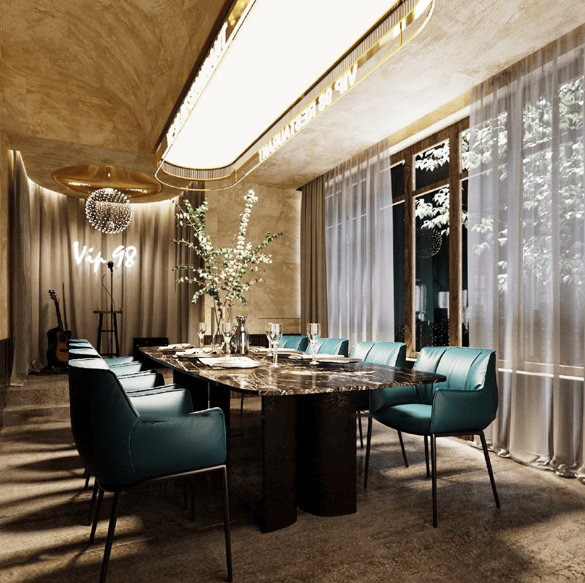 Thấu hiểu điều đó, không gian VIP98 được ra mắt - Sự kết hợp tinh tế giữa thiết kế mang đậm phong cách kiến trúc nhiệt đới hiện đại với tone màu ấm áp.. Một lựa chọn hoàn hảo cho những ai muốn tổ chức sự kiện trong không gian riêng biệt nhưng vẫn mang lại cảm giác thoải mái.