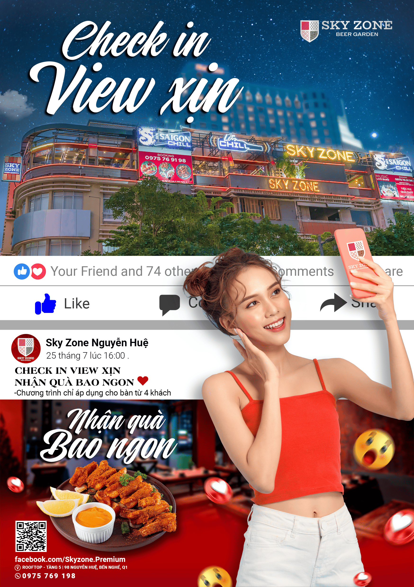 Ghé SKY ZONE check-in VIEW TRIỆU ĐÔ ngay phố đi bộ Nguyễn Huệ, ngồi cùng anh em chiến hữu cạn ly bia mát lạnh thêm trăm món mồi ngon. Nhạc lên quẩy bay hết muộn phiền thì còn gì bằng.