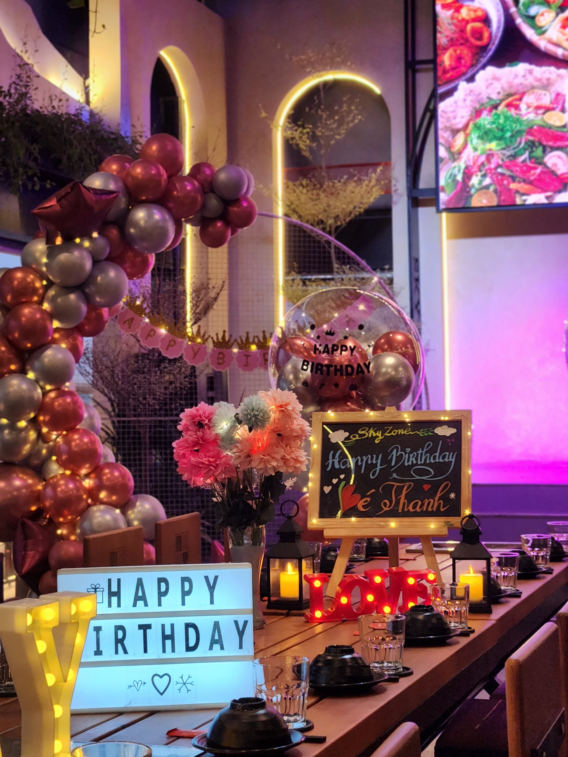 Dịch vụ trang trí sinh nhật của Sky Zone tự tin với nhiều phong cách trang trí khác nhau từ kết hợp với bóng bay… và nhiều ý tưởng khác mà tạo ra những sản phẩm sinh nhật thật bất ngờ và lãng mạn.